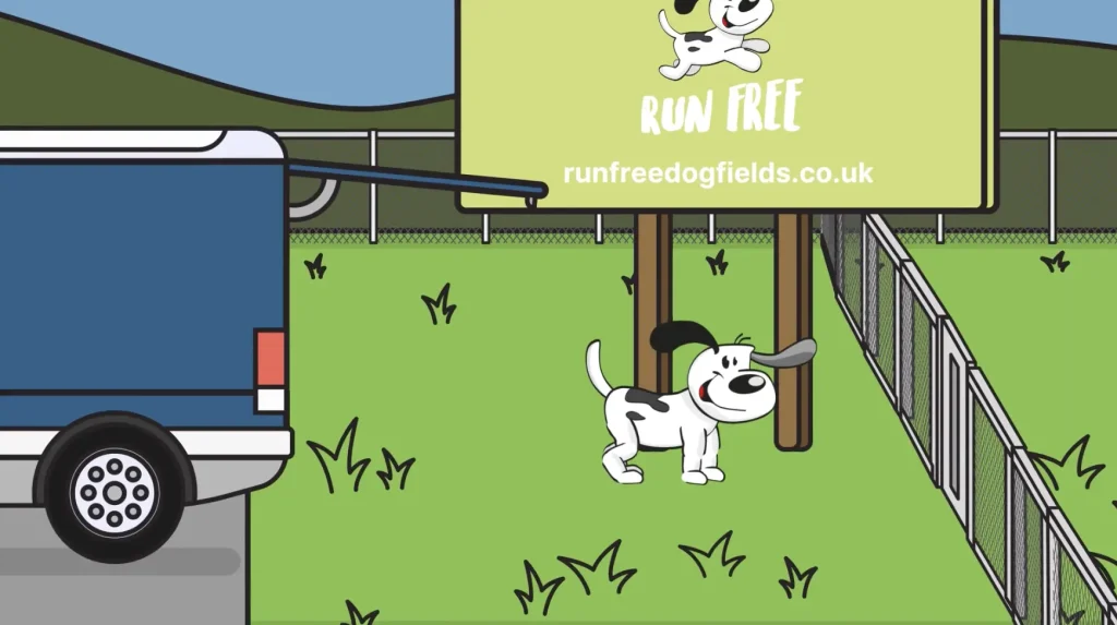 Our Stirling Run Free dog fields are conveniently located a few minutes from junction 9 of the M9 and M80, just outside St Ninians. The Gateside field is gently sloping and has parking to allow you to let your dog out of your vehicle straight in the field. The Cambusbarron field is flatter and both fields have a shelter, picnic table, water and poo bags provided. The fully enclosed dog parks are the perfect places for letting your dog run free. There are car parking spaces for 2 cars, adjacent to the entrance to each field.